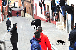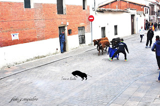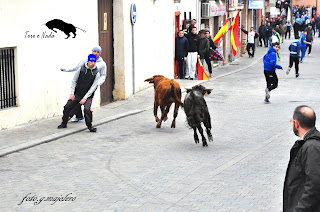 Encierro con novillos de capea. Se