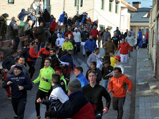 se queda atrás, haciendo todo el encierro en solitario. Por delante los cinco