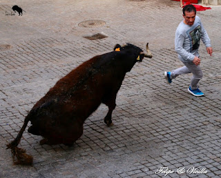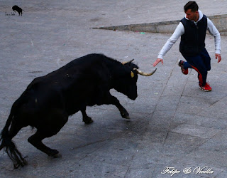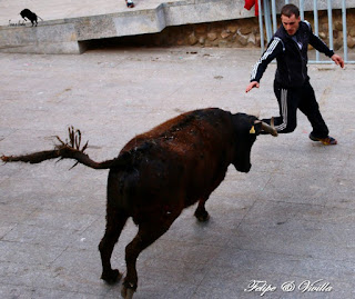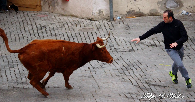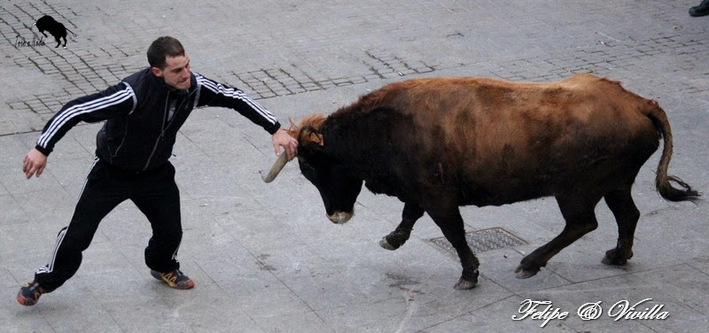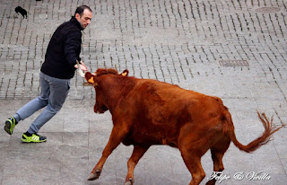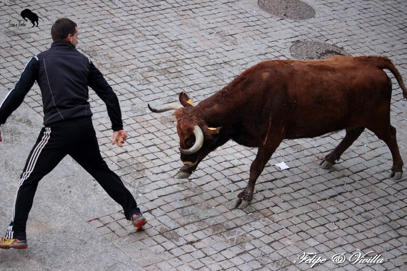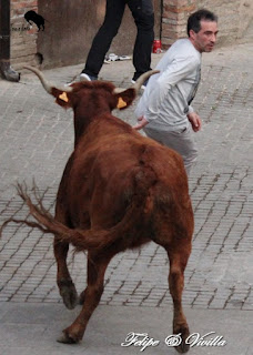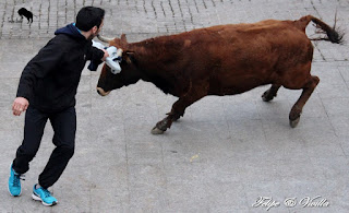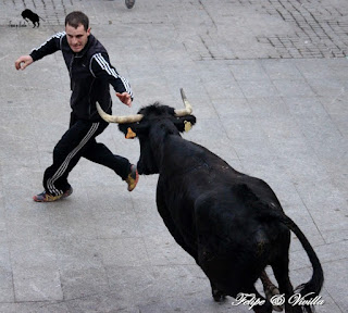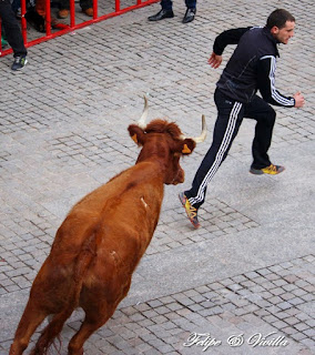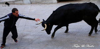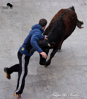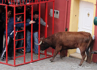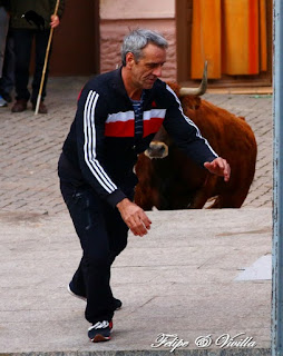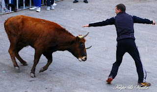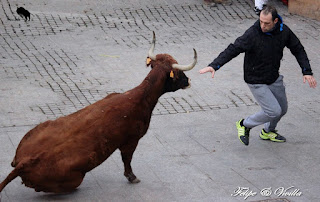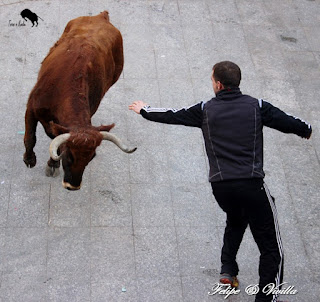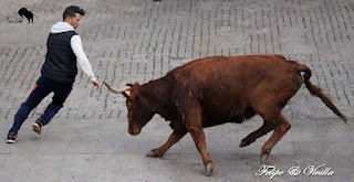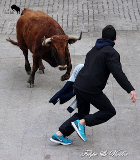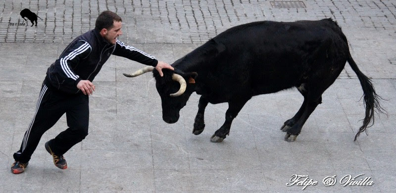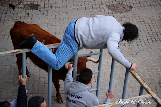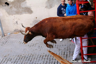 un bonito salto de una de las vacas. Para cortar la salida hacia las calles,