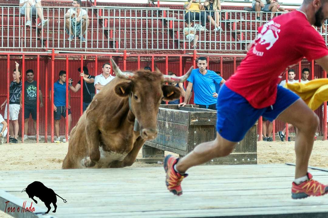 momento, llegando a alcanzar a un aficionado contra los barrotes, por suerte