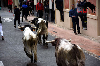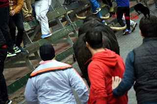 con buen ambiente de fiesta y toros en las calles de Blanca. Encierro de 4