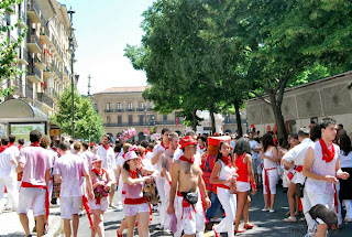 Los pamploneses al igual que ciudadanos de todas las nacionalidades, razas, colores y estratos sociales del mundo sin límites territoriales disfrutamos por igual de esta experiencia entre apretujos y empujones, sonreíamos, cantábamos y bailábamos desatando nuestros pañuelos de la muñeca del brazo para ponérnoslo en el cuello. Un acto que se hace con los rostros muy contentos, en una fiesta inolvidable.