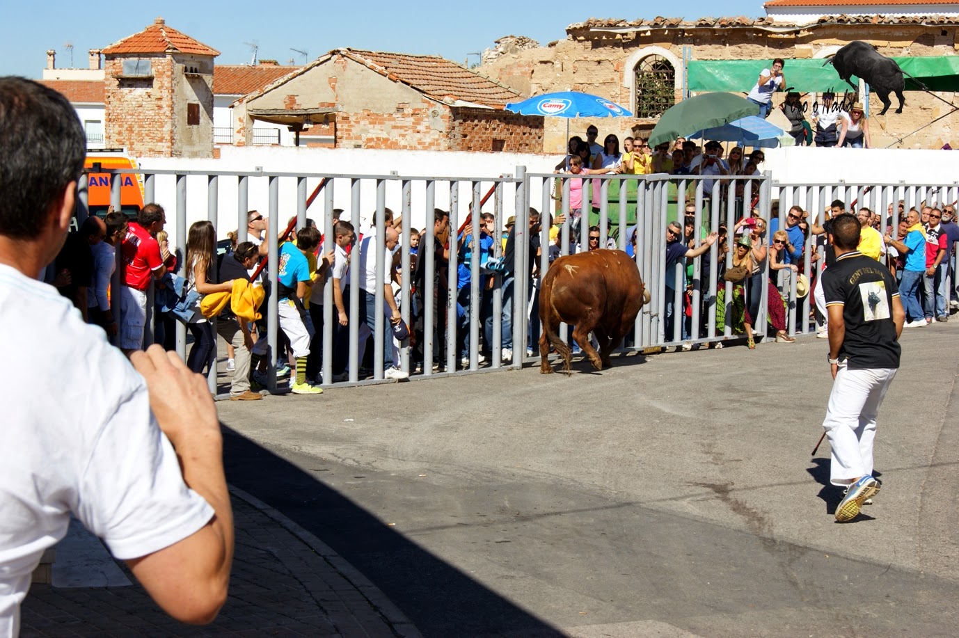 Posteriormente se soltaron tres toros de uno en uno, el primero de ellos a la media hora, un toro muy bonito, de preciosa estampa, muy dubitativo y mirón a los barrotes desde donde le llamaban constantemente.