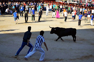 Después vendría disfrutar un rato con los amigos. Estuvimos con una peña con solera en Arganda, la peña el Barranco, fuimos tratados a la perfección. Nos invitaron a almorzar, a tomar unas deliciosas rosquillas caseras, hechas por unos cuantos socios en las vísperas fuimos después con su fiel charanga de rondón, fiel porque llevan yendo ininterumpidamente desde el nacimiento de la peña. peña fundada únicamente por hombres, pero que al poco tiempo permitieron la entrada de las mujeres. Si vais a Arganda os animamos que conozcáis a esta estupenda gente, seguramente os traten muy bien.