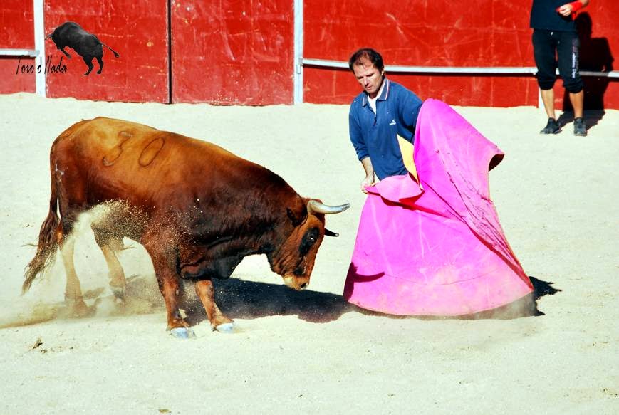 muleta, bajando la cara y muy templado, bueno el novillo.