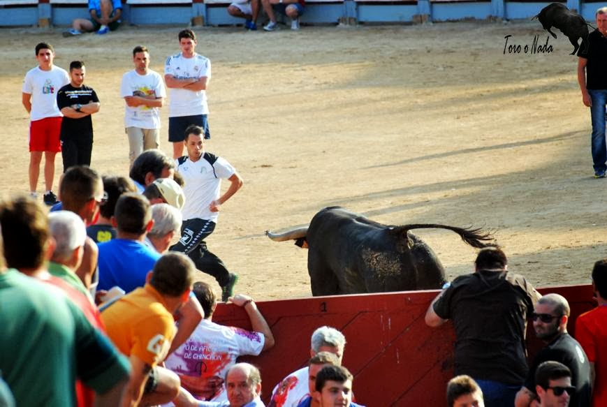el toro no hacía caso de estos y sí a las llamadas de los mozos. Lamentar una