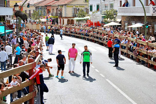 Lástima que no hubiese dinero para soltar una buena novillada. Los erales de Moralzarzal de Carmen Segovia estaban bien presentados, pero son demasiado pequeños para un encierro como este, quizás por eso había menos gente en el recorrido. Por cierto, se oye que Carmen Segovia se está deshaciendo de la ganadería, es una lástima, porque tiene ganado con mordiente y con hechuras.