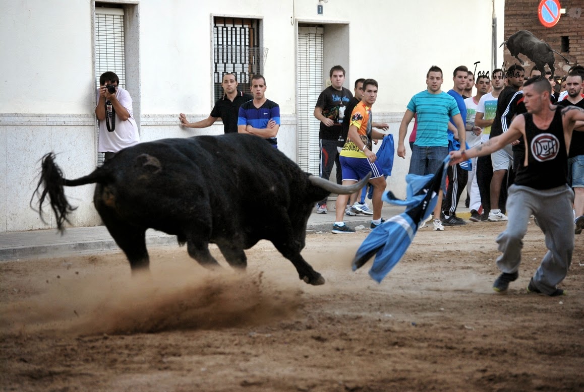Bastante gente se desplazó desde Onda a Vinalesa a ver a los tres impresionantes astados que se soltarían. Empezaron casi puntuales, a las 17:05, soltando en primer lugar a un ejemplar de José Escolar, Vinatero, del año 2.009 y con el número 29. Precioso el animal, típico de la camada del suegro de El Fundi, ganadería abulense, con reses procedentes de D. Victorino Martín, de la línea Marqués de Albaserrada.